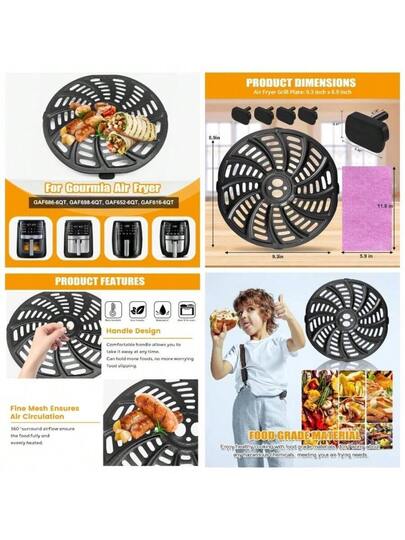 Fryer Parts Gourmia GAF686 GAF698 Fryer, Oval Nonstick 9.3''*8.9'' Fryer Accessories Grill Pan Grill Plate Crisper Plate Basket Tray Rack with Rubber Bumpers - 9,3'' * 8,9'' - Añade 4