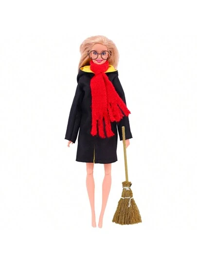 Conjunto De Disfraz De Elfo Que Incluye Bata, Bufanda, Escoba, Accesorio De Muñeca De 11.81 Pulgadas, Para Fiestas De Niños, Regalo De Cumpleaños Y Juguete - Amarillo - Añade 1