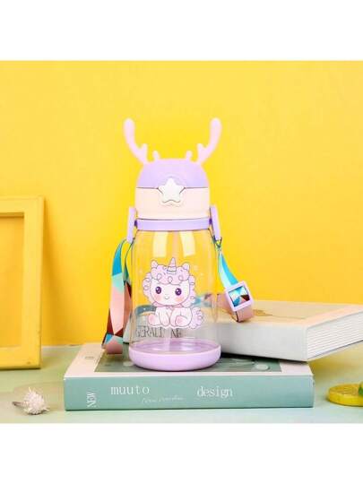 Elk Water Bottle Kids Toddler Portable With Straw Multicolor Design - Morado - Añade 8