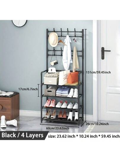 Soporte Para Sombreros Y Zapatos Simple De 1 Pieza, Perchero De Pie Para Abrigos Y Sombreros, Estante Integrado Para Zapatos, Perchero Para Abrigos De Dormitorio Y Sala De Estar, Estante De Almacenamiento De Zapatos De Entrada, Suministros De Organización Y Almacenamiento Para El Hogar - Negro - Añade 4