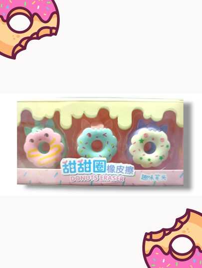Gomas desarmables donas en cajita 3 piezas. - Multicolor - Añade 1