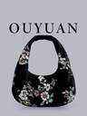 Bolso de hombro con bordado de lentejuelas, bolso cruzado semicircular clásico con bordado floral, bolso de cena con contraste de color, puntada de lentejuelas y cremallera para mujer. Tipo de bolso preferido, bolso multiusos, se puede usar como bandolera, la cadena plegada a la mitad se puede usar como bolso de hombro. (La posición del patrón se corta aleatoriamente)