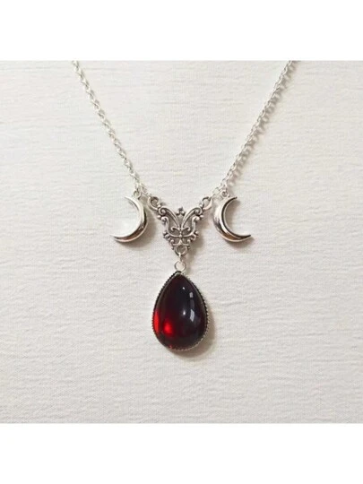 Collar De La Triple Luna Gótico Europeo Y Americano - Plateado - Añade 5