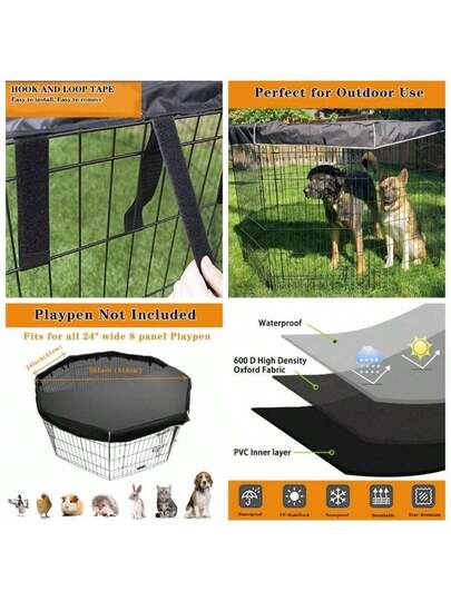 Funda para bolgrafo para perro con tela duradera y red de malla, proporciona sombra y , la cubierta superior para corral para perro se adapta a todos los 8 paneles de 24 pulgadas de ancho, bolgrafo de ejercicio para mascotas en interiores y exteriores, fcil de montar, negro - Negro - Añade 1