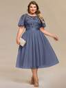 EVERPRETTY Vestido de noche elegante de talla grande con cuello en V, parches de lentejuelas, mangas con volantes de malla negra para mujeres, vestido de fiesta de Navidad, vestido de cóctel, vestido de graduación para invitados de boda