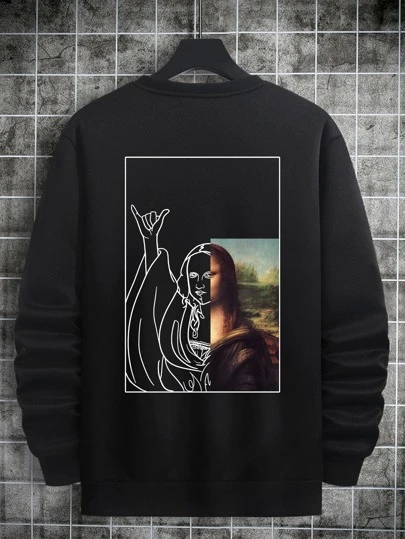 Manfinity Hombres Sudadera con estampado de figura - Negro - Añade 2