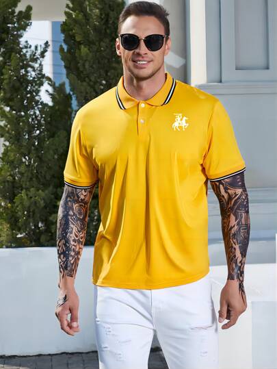 Manfinity Hombres Camisa polo ribete de rayas - Amarillo - Añade 3