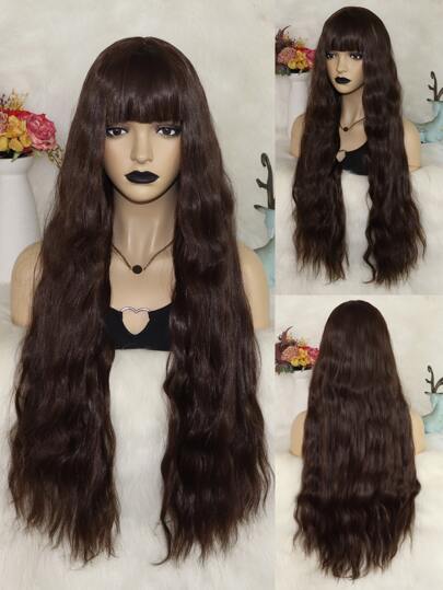 Peluca sintética extra larga rizado con tupe - Marrón - Añade 1
