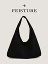1 pieza Bolso de hombro de gran capacidad de tela de ante FEISTURE, bolso de mano con cordón de moda, cierre con cremallera, adecuado para chicas, mujeres, estudiantes universitarias, jóvenes profesionales, excelente para el trabajo, los negocios, los desplazamientos, la escuela