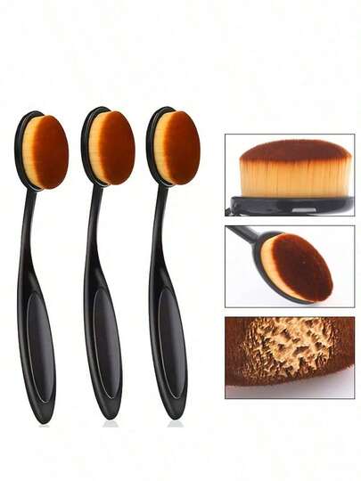 1 x Set de Brochas Ovaladas - Brochas de Maquillaje Grandes Tipo Cepillo de Dientes Para Base Líquida, Base en Crema, Polvos Sueltos y Protector Solar, Aplicación Profesional Rápida e Impecable, Brochas para Maquillaje Facial, Ofertas - Negro - Añade 3