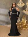 Faeriesty Elegante vestido de noche con hombros descubiertos y mangas largas, con cierre de lazo en la espalda, abertura alta en el muslo y silueta acampanada en A - Vestidos de gala premium para eventos de etiqueta negra, banquetes de lujo por la noche, alfombra roja, noches de ópera y grandes recepciones de bodas