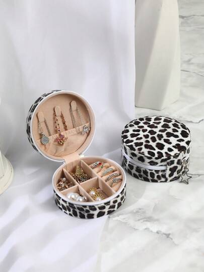 Elegante Caja De Joyería Pequeña Redonda Con Estampado De Leopardo - Blanco y Negro - Añade 1