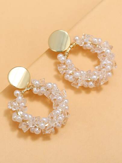 Pendientes Colgantes Decorados Con Perlas De Imitación - Multicolor - Añade 1