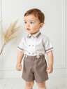 SHEIN Set de 2 piezas de chaleco y pantalones cortos de estilo coreano informal de color caqui de doble botonadura para niño/niña, adecuado para fiesta de cumpleaños, fiesta de noche, actuación, boda, baby shower, celebración del 1er cumpleaños