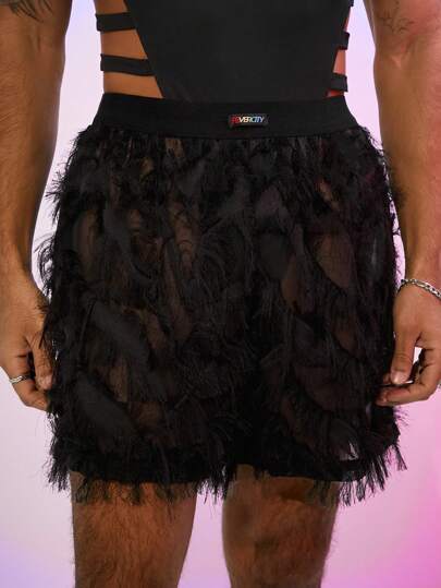 FeverCity Pantalones cortos holgados de pierna ancha con estampado de flecos para hombres - Negro - Añade 1