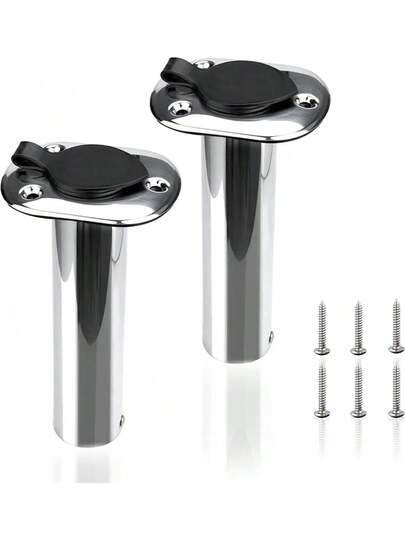 2 Paquetes de Soportes para Cañas de Pescar, Soporte de Caña de Acero Inoxidable para Barco con Tapas de PVC y Tubos Internos, Soportes para Cañas de Pescar para Barco Marino, Yate, Barco de Pesca - 90 grados - Añade 10