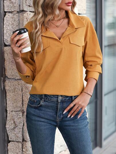 SHEIN LUNE Blusa con diseño de solapa de hombros caídos con diseño de solapa - Amarillo - Añade 4