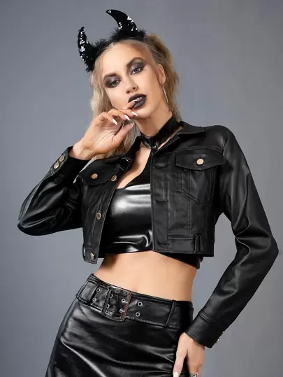 Cazadora mezclilla corta con bolsillo con solapa - Negro - Añade 2