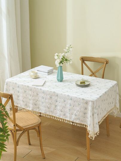Mantel con bordado floral con diseño de fleco - Multicolor - Añade 6