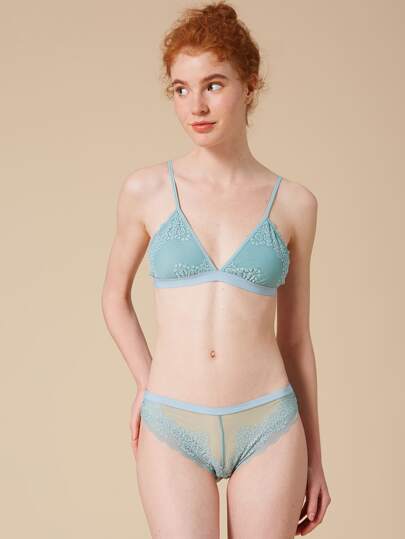 Set de lencería con encaje floral inalámbrico - Azul Cadete - Añade 8