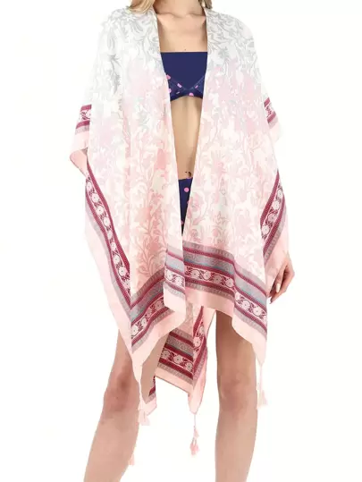 Chal con estampado floral con diseño de fleco - Multicolor - Añade 1