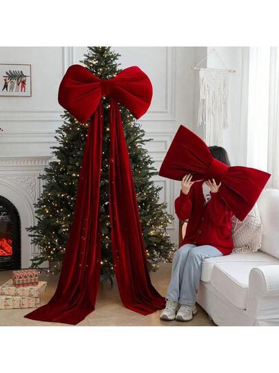 Decoración de lazo de terciopelo esponjoso para el Día de San Valentín, fiestas, decoración de habitaciones, coronador de árbol - Burdeos - Añade 1