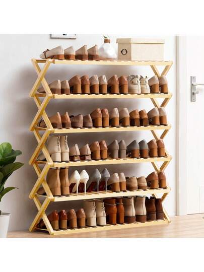 Zapateras Almacenamiento Zapatos Bamboo En Plano 6 Niveles Color Color Madera - Caqui - Añade 1