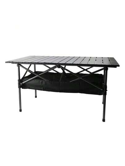 Folding Portable Camping Table Roll-up Table with Storage for Backyard Beach BBQ - Negro - Añade 1