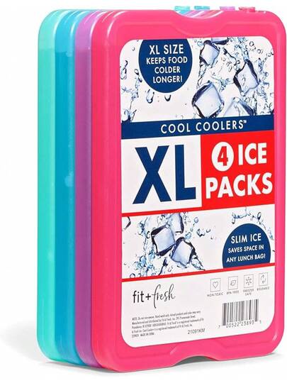 Fit & Fresh - Paquetes de Hielo XL Azul 4pk - Bolsa de Hielo delgada para Fiambrera, 4 Unidades - Multicolor - Añade 4