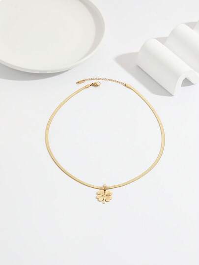 Collar con accesorio trébol de cuatro hoja - Dorado - Añade 1
