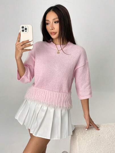 Chiquease Suéter de punto con dobladillo con pelo - Rosa - Añade 1