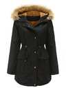 Chaqueta con capucha desmontable de piel sintética para mujer