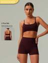 GOSOUER 2 piezas Conjunto deportivo de coordinado para mujer con sujetador deportivo de espalda descubierta con tirantes cruzados ajustables y estampado de lunares, y leggings deportivos de cintura alta que realzan las caderas para yoga, entrenamiento y actividad física