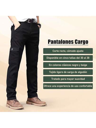KTMOUW]Pantalones Cargo Clásicos de Sarga para Hombre,Pantalones de Trabajo de Algodón con 6 Bolsillos,Pantalones Casuales para Hombre,Pantalones Cargo de Ajuste Relajado - Negro - Añade 1
