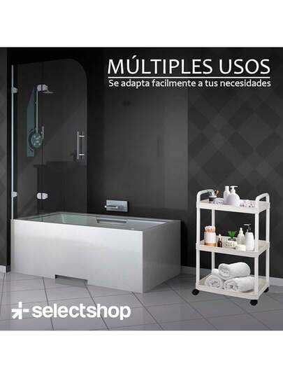 Plástico, Rodante Multiusos, Fácil de Montar HG55C1 Carrito Organizador de 3 Niveles, Carrito de Serviciocon Ruedas Universal, Carrito de Almacenamiento de - BLANCO - Añade 7