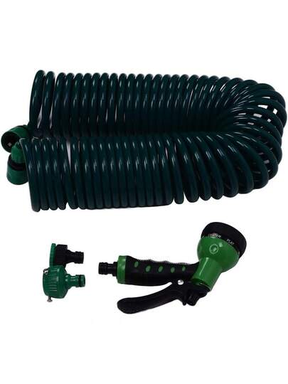 Manguera de Agua para Jardín en Espiral, Tubo de Resorte Telescópico EVA de 15m y 7 Modos para Regar Plantas, Jardines, Césped, Lavado de Coches - Negro - Añade 1