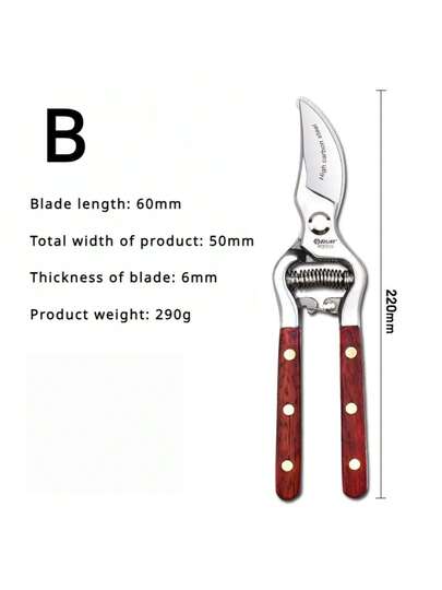 Tijeras de podar de 8 pulgadas con mango de madera, podadora de jardín, tijeras para cortar ramas de árboles, tijeras de podar de frutas - B - Añade 1
