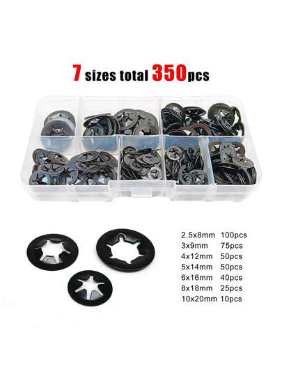 350 unids/caja M2.5-M10 Circlip externo Clip de retención autoblocante empuje en el eje rodamiento anillo a presión arandela Kit Set negro 65mn acero TWWP - acero negro de 65mn - Añade 7