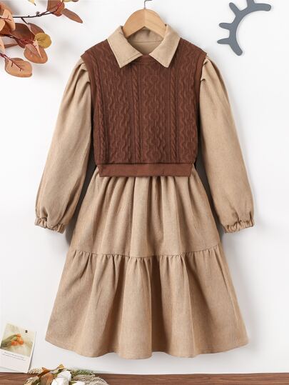 Niñas Vestido de manga obispo bajo con fruncido & Top tank - Multicolor - Añade 1