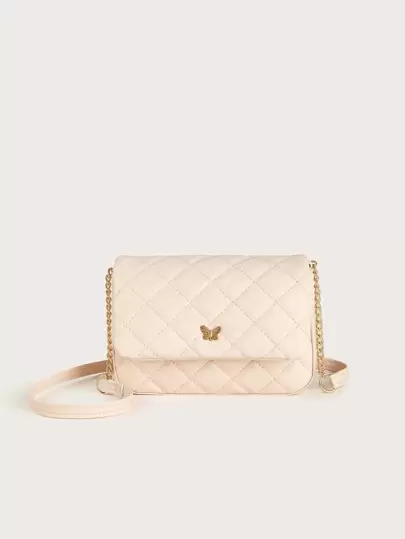 1 pieza Bolso de hombro con solapa de cadena con diseño de tartán y costuras de mujer niña, a la moda y dulce, color rosa nude, para uso diario - Rosa vieja - Añade 1