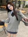 Suéter de mujer de manga larga con cuello polo, de colores contrastantes, de corta longitud y delgado, para otoño/invierno, estilo coreano