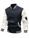 Chaqueta de béisbol de manga larga con bloques de color y ribete a rayas para hombre, otoño