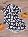 Set de pijama de 2 piezas con estampado de ojos de primavera para mujer, blusa de punto con cuello y pantalón corto de cintura elástica, conjunto de ropa de dormir y casual para todo el año