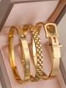 Set de joyería de 3 piezas/1 pieza, pulsera de acero inoxidable chapada en oro de 18K con trébol de cuatro hojas, adecuada para fiestas, uso diario, estilo europeo y americano, personalizada, generosa, con circonita cúbica de lujo, para bodas, regalo para chicas, mujeres, familiares, amigos, para bodas, cumpleaños, día de San Valentín