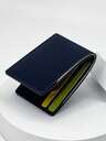 HOVI'S Billetera delgada para hombres de HOVI, de piel de PU con ventana para ID y múltiples ranuras para tarjetas, diseño minimalista compacto de 12x9.8x1cm, color negro con costuras marrones