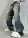 Jeans rectos de pierna suelta con lavado vintage y desgastados para hombres, jeans de estilo versatil y de calle Y2K, adecuados como regalo para novio o esposo