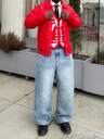 Jeans casuales sueltos con bolsillo y abotonadura frontal para hombre HEHCN