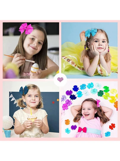 40 Piezas de Lazos Para El Pelo de Niñas, Moños para NiñAs con Cinta de GrogréN, Accesorios Para El Pelo de NiñOs PequeñOs, con Antideslizante Y Totalmente Envueltos, Lazos para Bebes Niñas y Adolescentes - Rosa - Añade 4