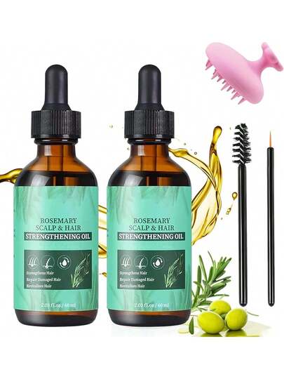 ¡RecomendadoAceite de Romero:Aceite de Romero para El Cabello-Aceite de Romero con Cepillos Masajeador del Cuero Cabelludo Para el Cabello Reparar El Cabello Seco y DañAdo Crecimiento Del-2PCS 60ML Rosemary Oil Hair Growth-100% Puro Natural Cejas Pestañas¡Top de Temporada - 1 - Añade 3