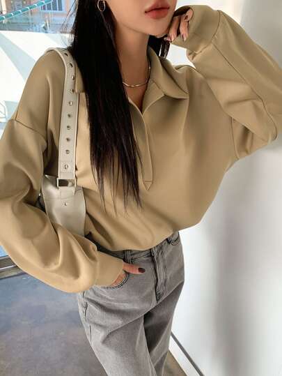 DAZY Sudadera tapeta media de hombros caídos - Caqui - Añade 1